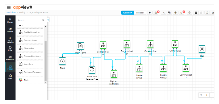 ADC+ facilitates the creation of automation workflows through its drag-and-drop visual builder, which can then be shared with the application owners with appropriate permissions. The app owners can self-service these workflows to run application-centric tasks such as virtual server provisioning, traffic management during updates, simple load balancer configuration changes, etc. Automation drastically brings down errors and the time spent on manual configuration changes and helps make the infrastructure agile.