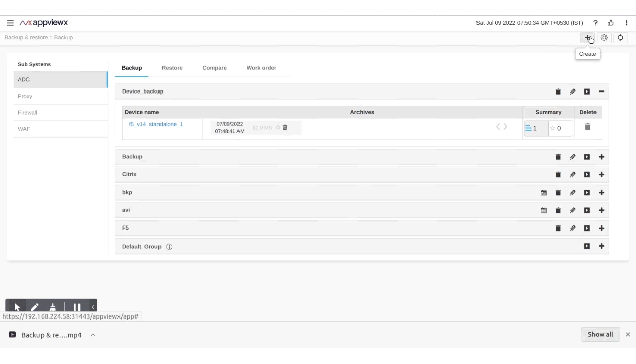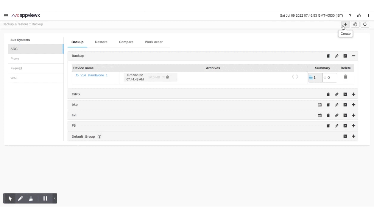 4. Restore backup: Restore device backup for future data recovery. You can either restore the entire device configuration or restore a particular chunk of application configuration such as VIP or Wide IP.