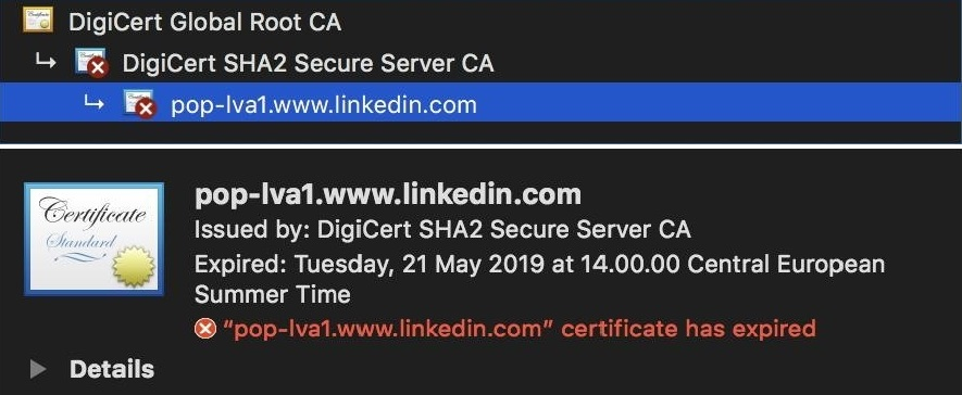 Earlier this week, several LinkedIn users reported the apparent inaccessibility of the website via certain browsers, owing to an insecure connection. The root cause of this mishap was later revealed to be an expired certificate–more specifically, a TLS certificate on their URL shortener (lnkd.in) which wasn’t renewed on time.