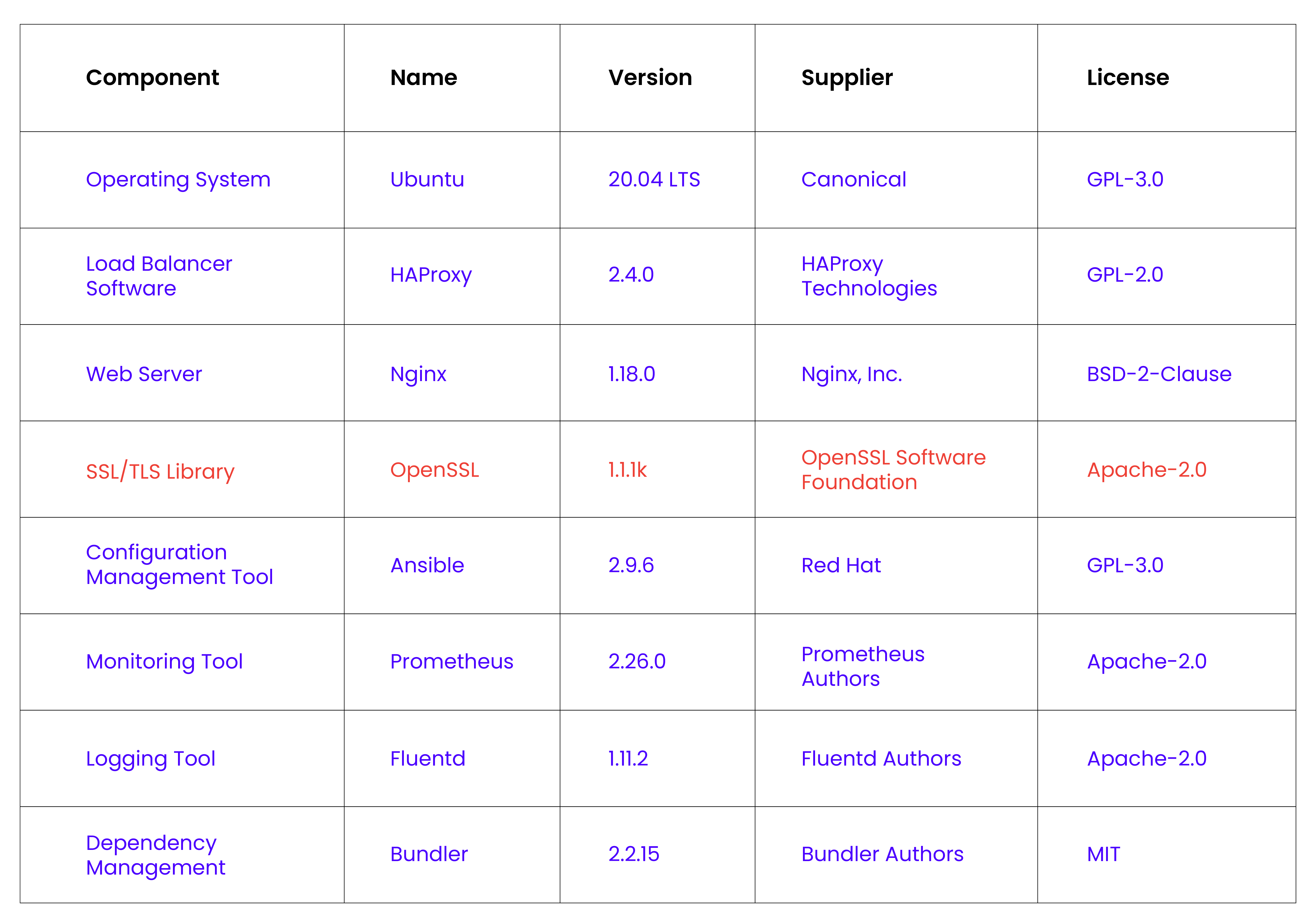 Furthermore, if a CBOM with further details were to be created for this load-balancer it may contain the following information in Table 2.