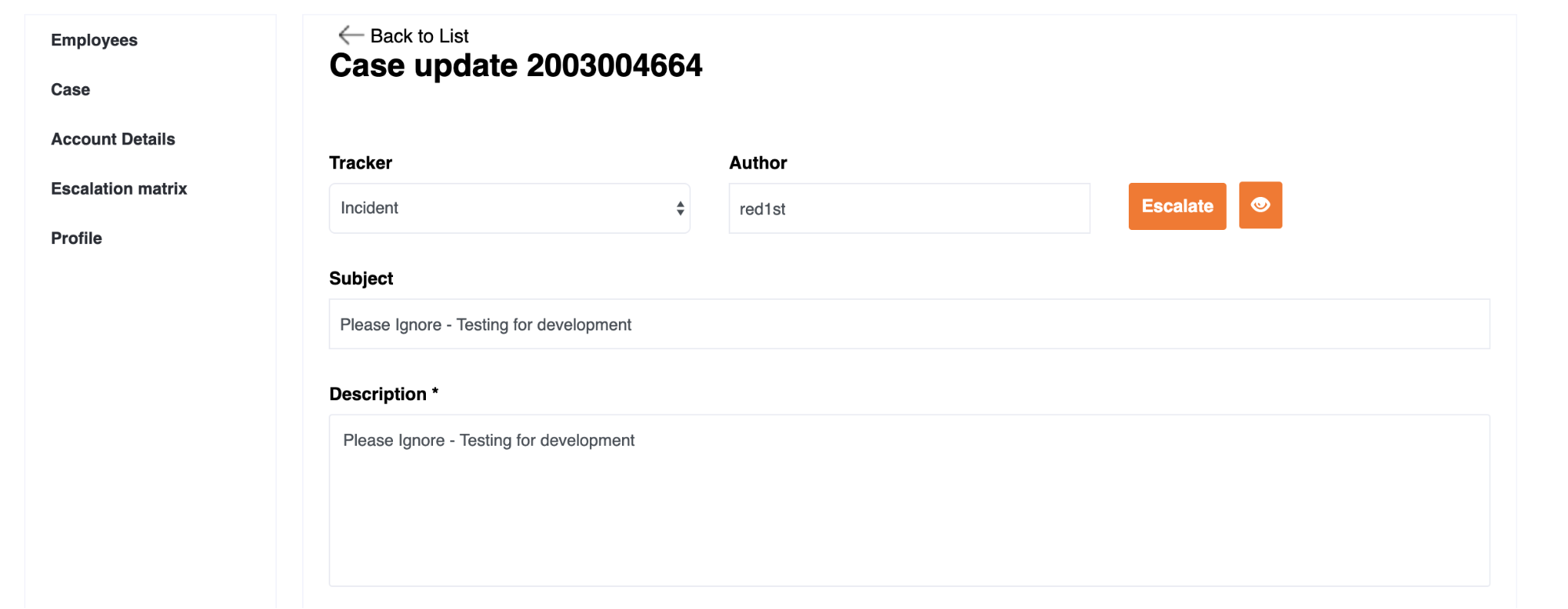Upon clicking the escalate button you will see the